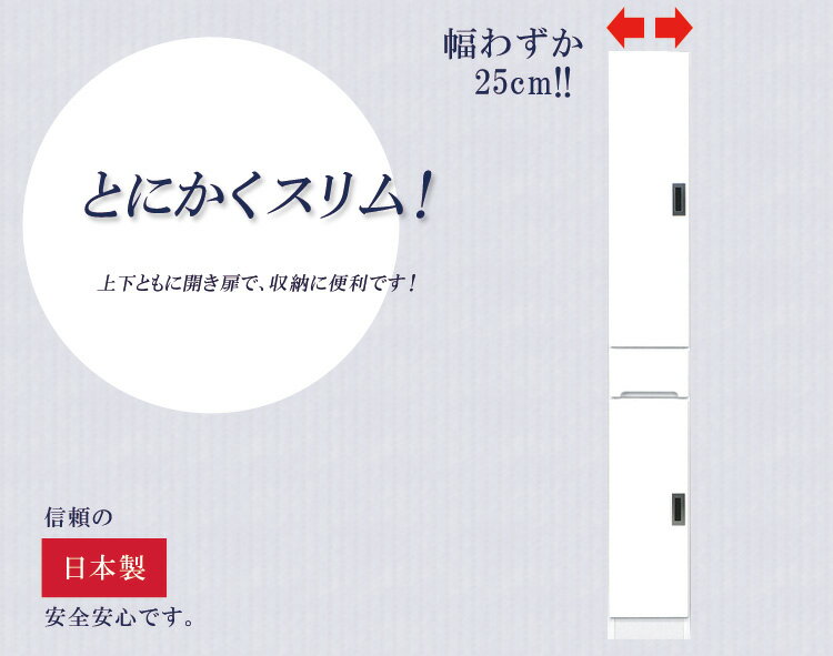 メーカー希望小売価格はメーカーカタログに基づいて掲載しています隙間収納 すきま収納 幅25cm 食器棚 スリム食器棚 ホワイト 開き戸タイプ 板扉タイプ スリム 引出し付き キッチンボード キッチン収納 ダイニングボード 収納 木製 キッチン 洗面所 玄関 国産 可動棚 送料無料