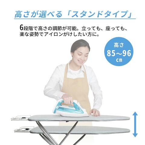 高さは6段階で調節が可能! スタンド式アイロン台 【Point】 ◆アイロン置台付き アイロン置台が付いているので、 天板を広々と使うことができます。